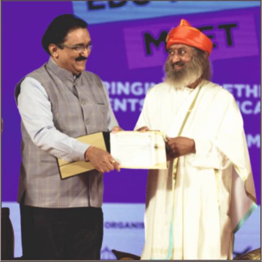 An MOU was signed between Professor Dr Sanjay B Chordiya, Founder President and Chairman, Suryadatta Education Foundation and Sri Sri Ravi Shankar, Founder, Art of Living Foundation during a grand Edu Youth Meet in Pune on February 4.