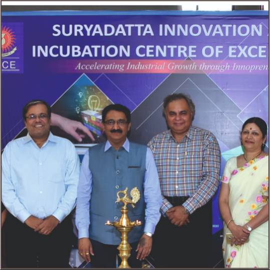 Prof Dr Sanjay B Chordiya, Founder President and Chairman of Suryadatta Education Foundation inaugurated Suryadatta Innovation and Incubation Center of Excellence (SIICE). Mr. Pravin Rajpal, founder of InnovatioNext, Mrs Sushma Chordiya, Vice President and Secretary, Suryadatta Education Foundation, Dr Shailesh Kasande, Mr Sunil Dhadiwal.