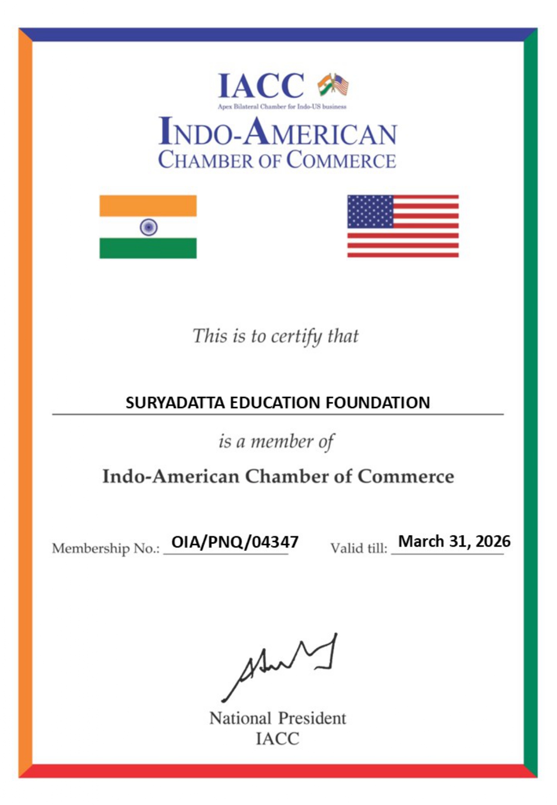 As a member of IACC, SEF aims to strengthen its global outreach, create new opportunities for students and faculty, and contribute actively to Indo-American business and educational initiatives.
