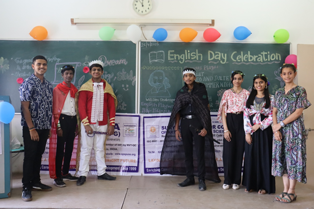 Suryadatta Junior College celebrated English Language Day with great enthusiasm under the guidance of the English faculty. The event aimed to promote the importance of English in the global world while encouraging creativity, confidence, and literary interest among students.
