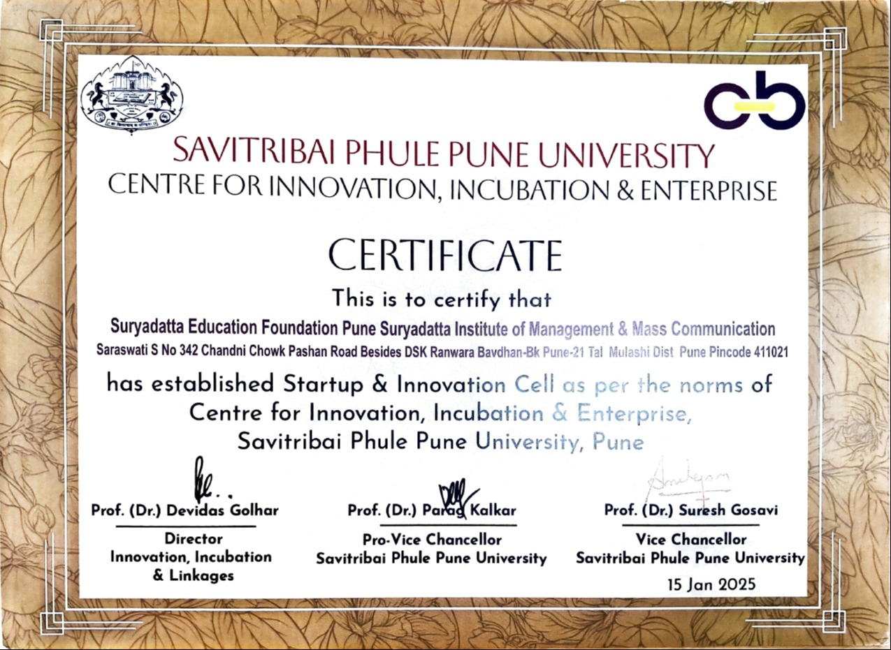 Suryadatta Group of institutes a renowned name in management education which has provide over 16000 managers & leaders in last 18 yrs. Suryadatta Incubation Centre is born with the vision of bringing decades of experience & expertise to the entrepreneurial world. We understand that majority of startups fail to make the cut, simply because they do not get the right guidance and the tools to steer them on the path to success. We realize the changing dynamics of new-age technology businesses & the need of a nurturing eco-system that allows wannabe entrepreneurs to focus on their core business. Suryadatta Incubation Centre envisions incubating business in the Information technology & manufacturing domain from across the globe.